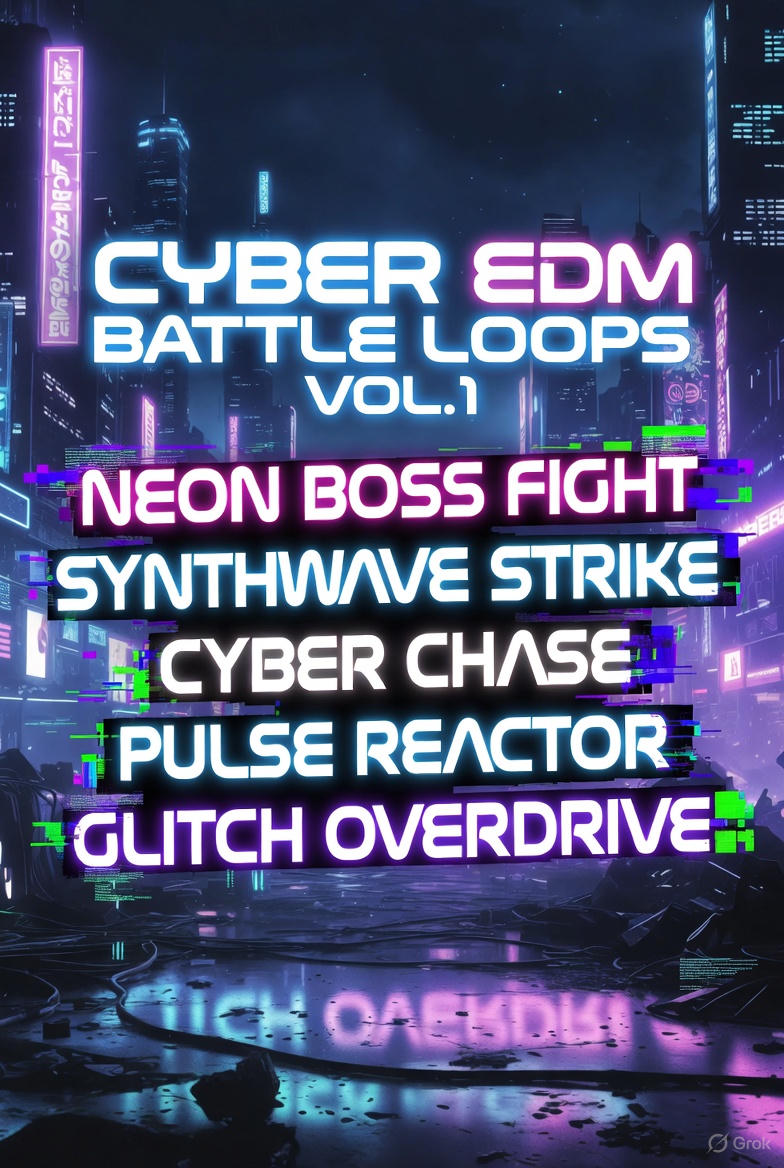 5 royalty-free, game-ready seamless loops (WAV 48kHz/24-bit) designed for intense cyberpunk / synthwave / action games.